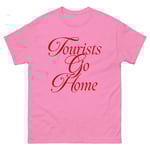 “Tourists go home” és un crit desesperat contra la situació d’emergència que vivim a Espanya amb la gentrificació i la turistificació dels nostres barris. Les administracions estan al servei dels sectors econòmics que prioritzen el capital a la vida de les veïnes i nosaltres diem PROU. Davant la negativa dels governs a intervenir i regular el sector, ens veiem obligades a atacar d’aquesta manera el sector turístic i alhora despertar empatia i consciència amb la gent que ve. La culpa NO és el turista, totes ho hem estat algun cop, però són còmplices de la situació i els demanem cooperació. Només la classe obrera organitzada revertirà la situació.